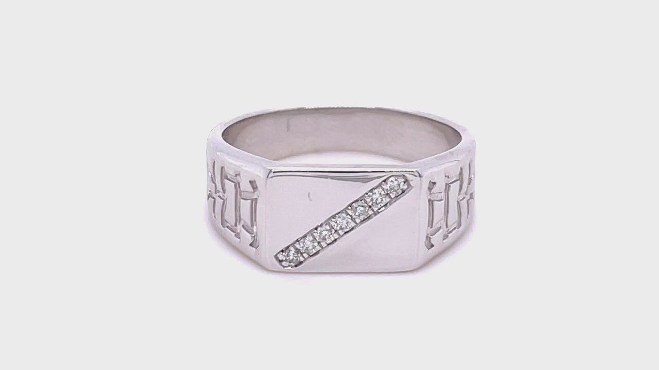 Mens Signet Ring with 0.09ct Diamonds in G/SI Quality 9k White Gold - All Diamond