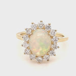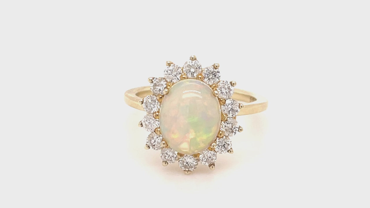 Opal 1.49ct and Diamond 0.82ct Cluster Ring in 9K Yellow Gold - All Diamond