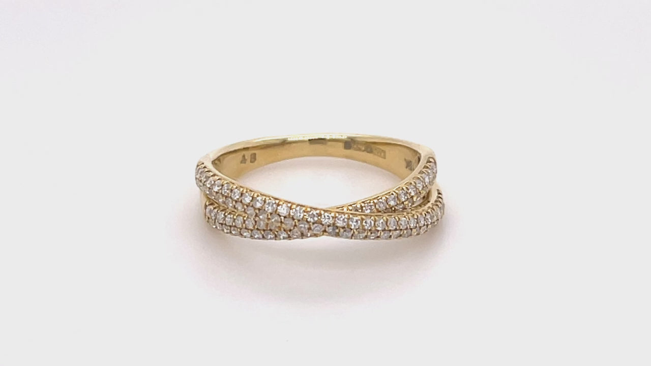 Pave Diamond Half Eternity Crossover Ring 0.50ct G/SI 18k Yellow Gold - All Diamond