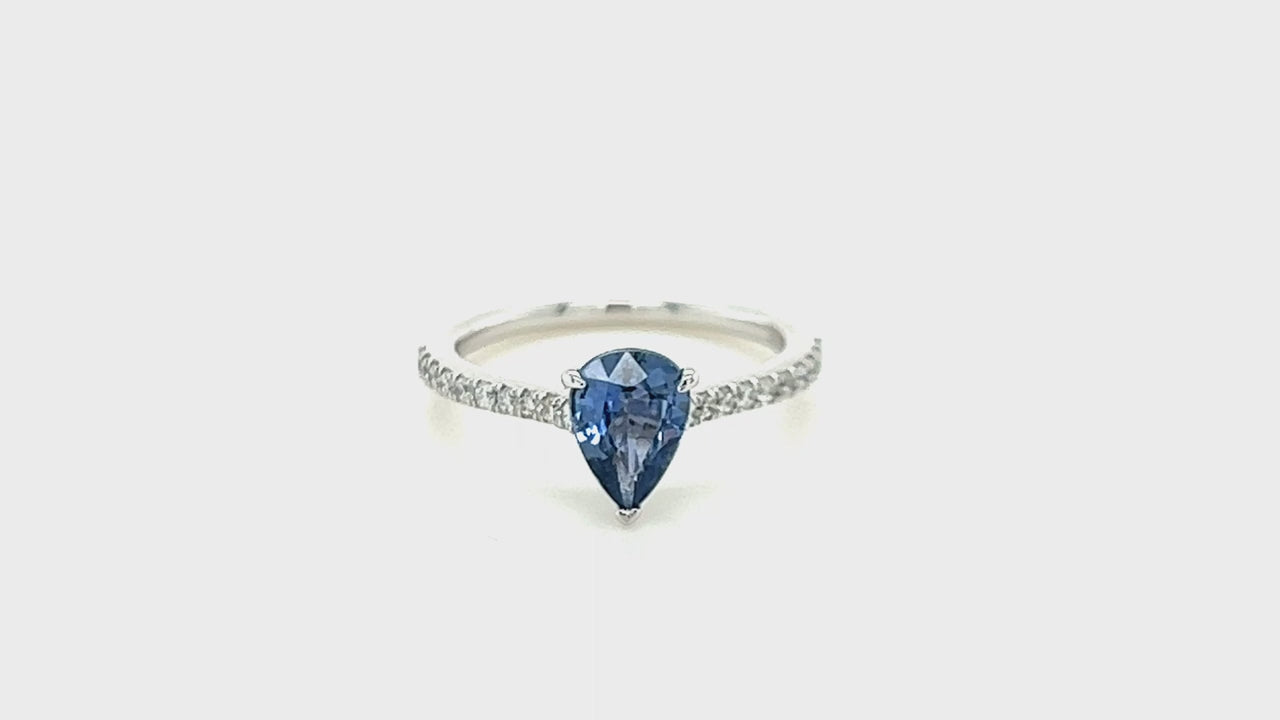 Pear Blue Sapphire and Diamond Engagement Ring 1.50ct 18k White Gold
