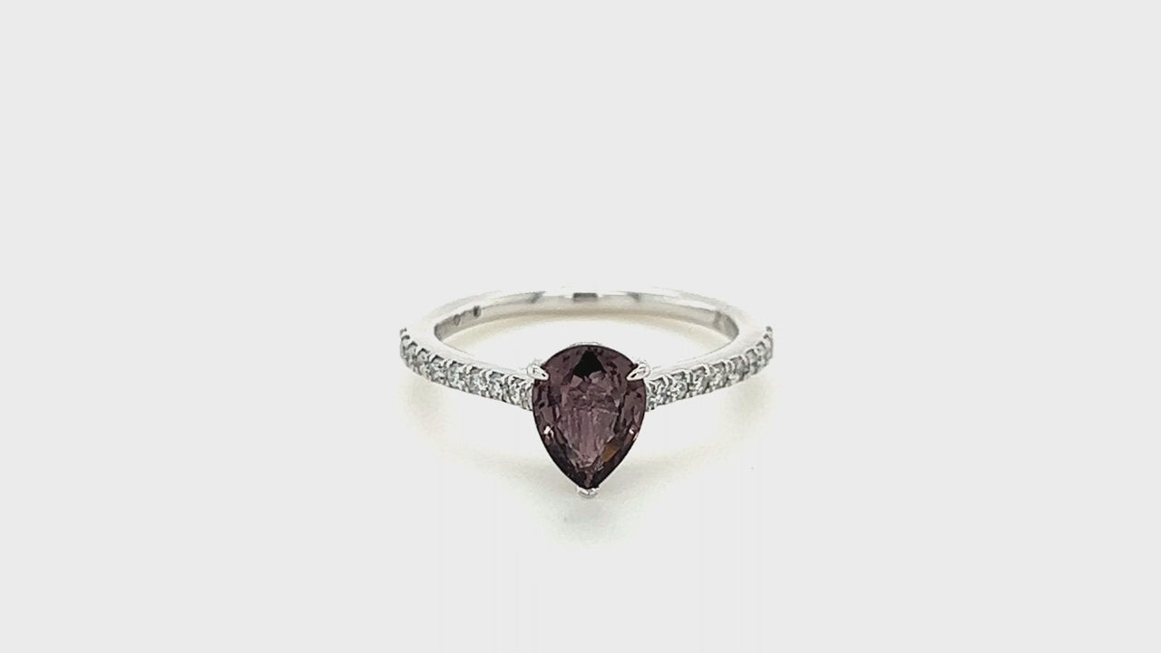 Pear Dark Pink Sapphire and Diamond Engagement Ring 1.50ct 18k White Gold