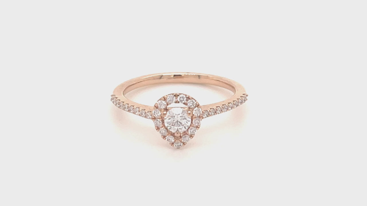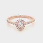 Pear Halo Diamond Engagement Side Stone Ring 0.35ct G/SI 18k Rose Gold - All Diamond