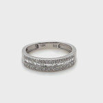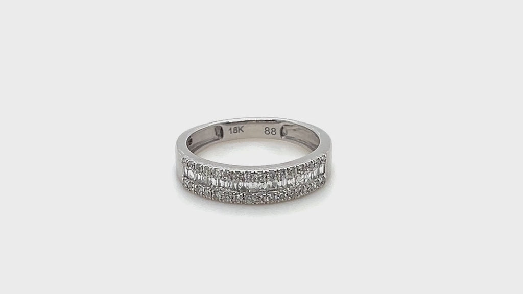 Give some rich and classy vibes with this beautiful half eternity diamond ring. Perfect for everyday wear, this stunning ring is handcrafted in fine platinum and showcase 0.33ct of hand-cut diamonds in round and baguette shapes for maximum sparkle and shine. Treat yourself with this captivating statement piece to be worn on its own or paired with other existing pieces of jewellery. A stylish accessory for a modern lady that will complement any outfit and offered with the lifetime guarantee of our craftsmen's workmanship.