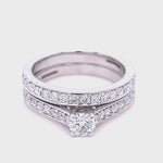 We know you want everything about your special day to be perfect. Ensure matching rings are one thing less to worry about with this beautiful bridal set in brilliant 18k white gold with the sparkle of 0.90 carats of hand-cut, ethically sourced, diamonds. Wedding and engagement ring matched flawlessly by our British craftsmen to give her timeless beauty for the rest of your lives together.