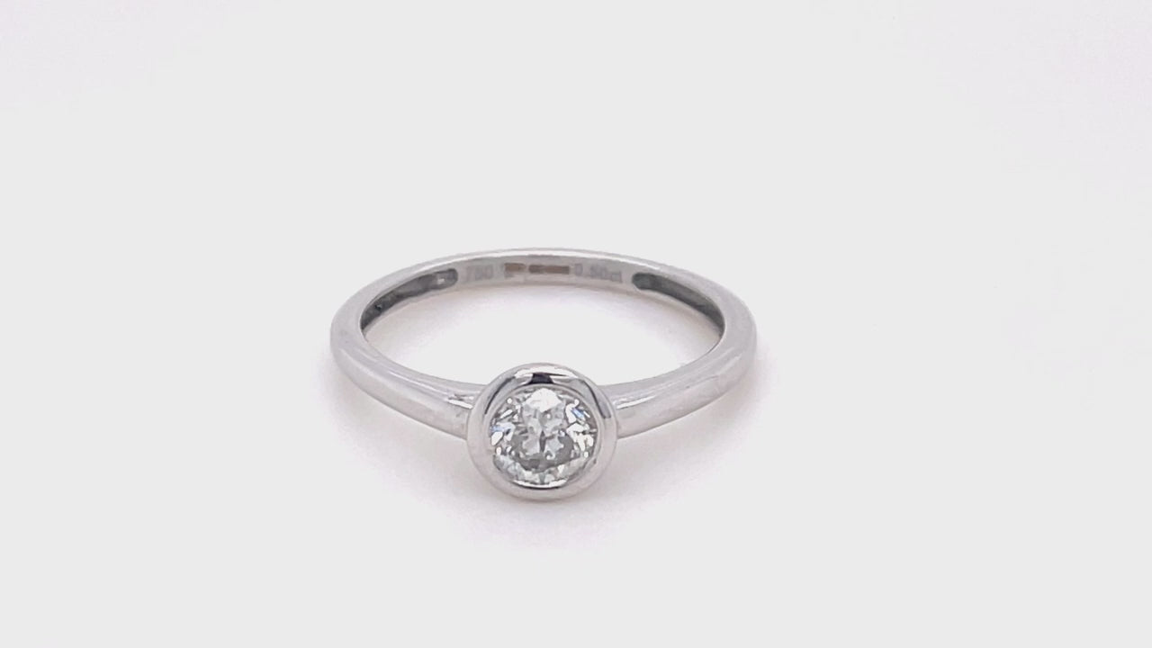 Rub Over Diamond Solitaire Engagement Ring 0.50ct G/SI 18k White Gold