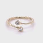 This diamond torque ring is handcrafted in 9k yellow gold. The 9k yellow gold has a UK hallmark of quality. The two G/SI quality diamonds have a total carat weight of 0.10 carat and are mounted in elegant rub over settings. The diamond torque ring will look beautiful and elegant on the hand and will surely add a touch of elegance to any look. This delightful ring is truly a beautiful piece of jewellery, sure to make your beloved feel proud and happy.