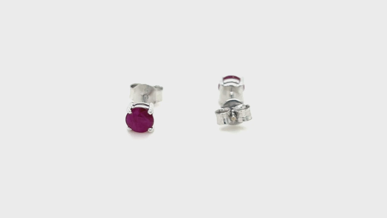 Ruby Solitaire Earrings 1.20ct in 9k White Gold 5.0mm - All Diamond