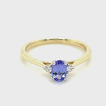 Tanzanite 0.50ct Diamond 0.06ct Three Stone Ring 9k Yellow Gold
