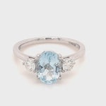 Three Stone Aquamarine 1.21ct & Diamond 0.32ct Ring in Platinum - All Diamond